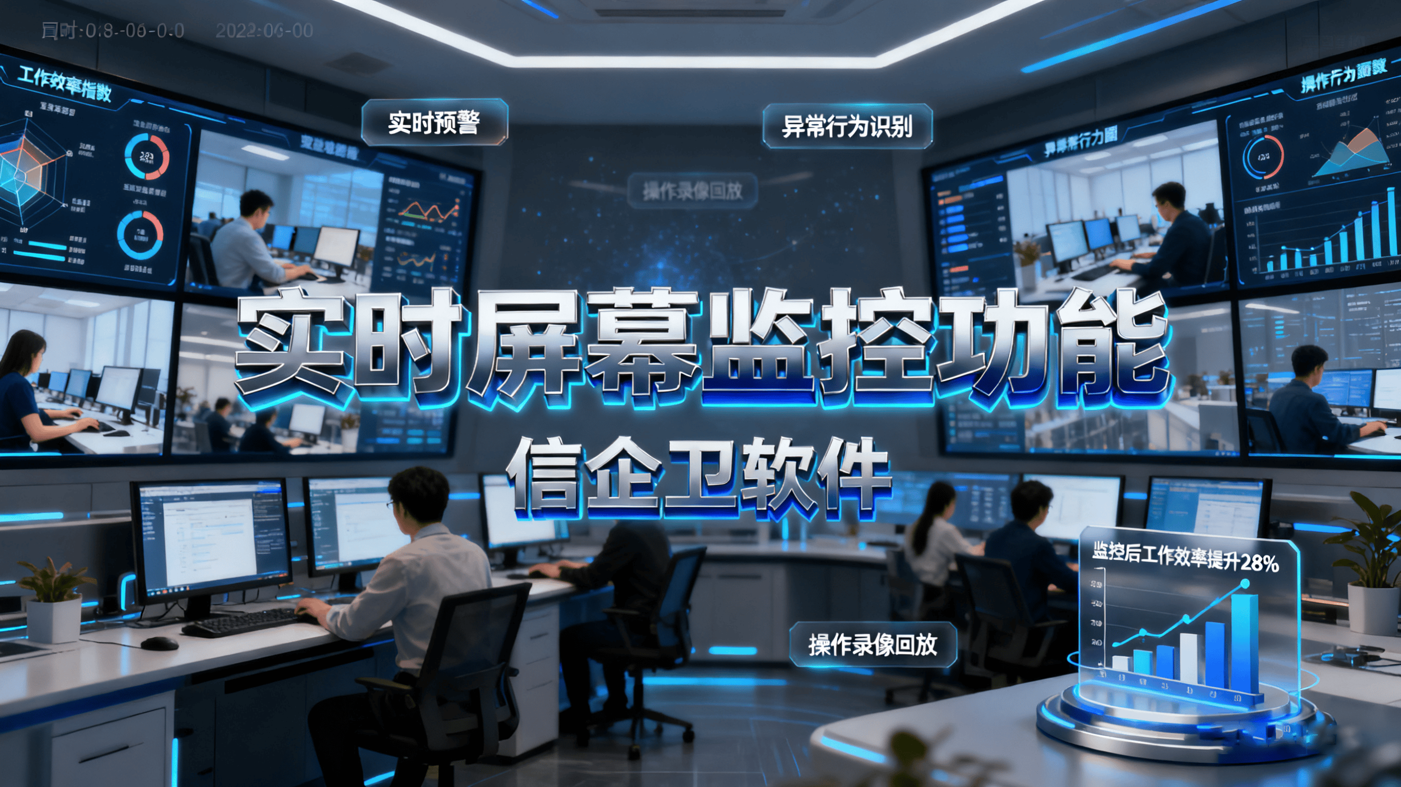信企卫软件专为企业级用户打造,集实时屏幕查看、屏幕录像、屏幕快照和时间画像四大核心功能于一体,真正实现对员工电脑使用行为的全方位、可视化管理。