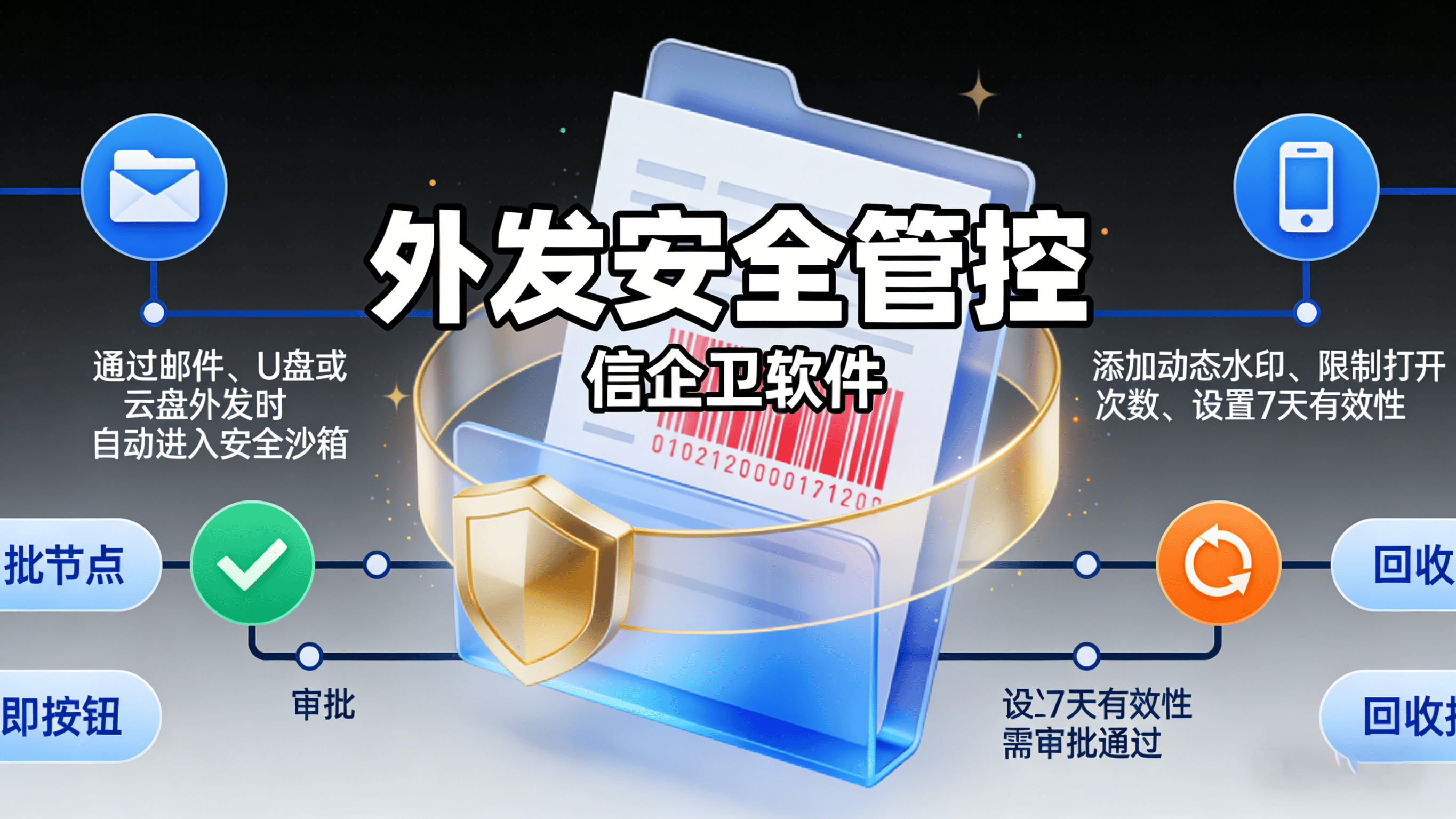 外发安全管控:外发文件可设置打开次数、有效期、设备绑定等限制,禁止打印、截屏或二次传播,审计日志完整记录操作链,确保文件可控可溯。