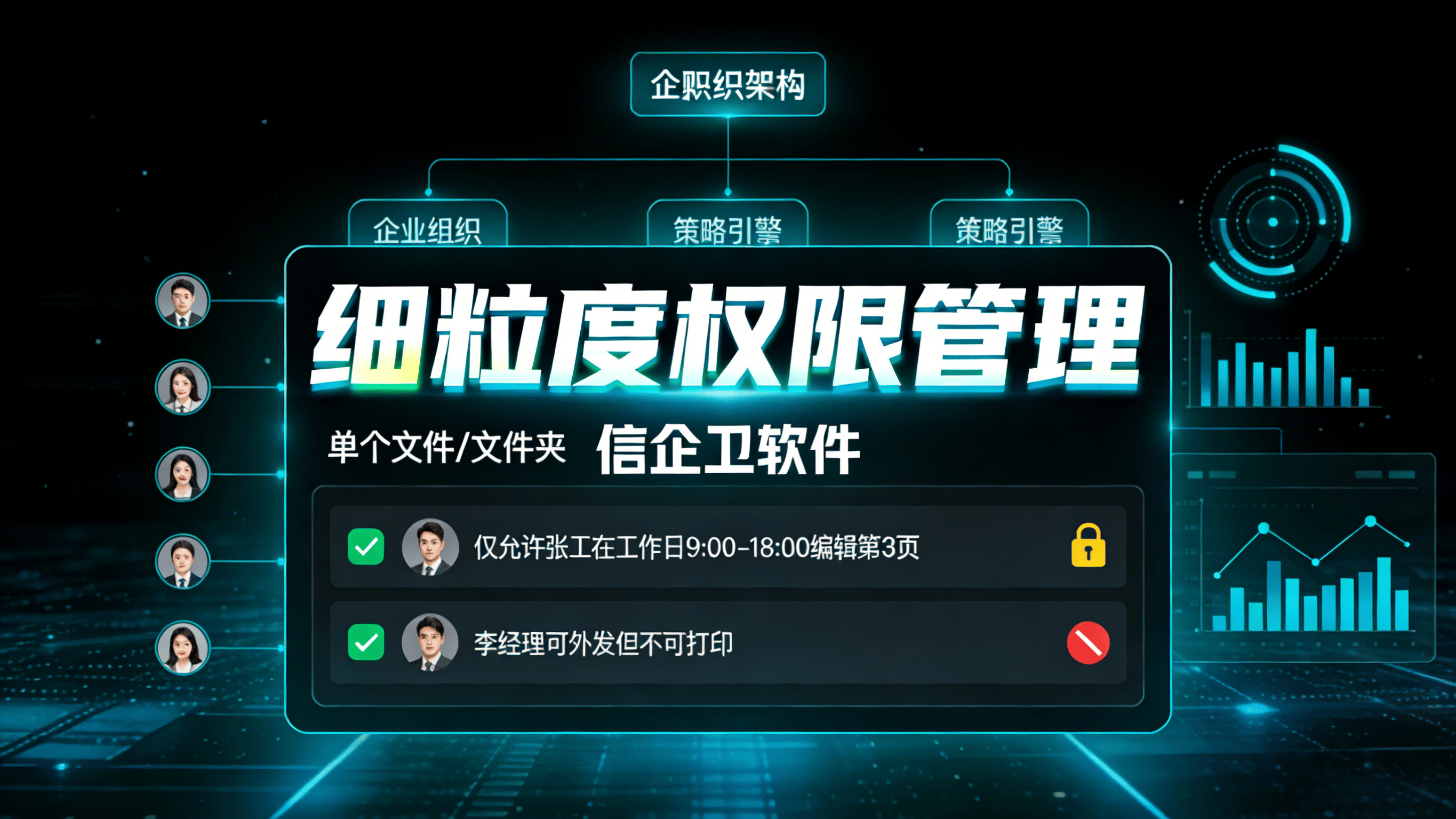 细粒度权限管理让文件不再属于“谁拿到就能用”的状态。信企卫支持按人员、部门、岗位设置不同访问范围,有人只读内容,有人可以修改,有人连打开机会都不存在。