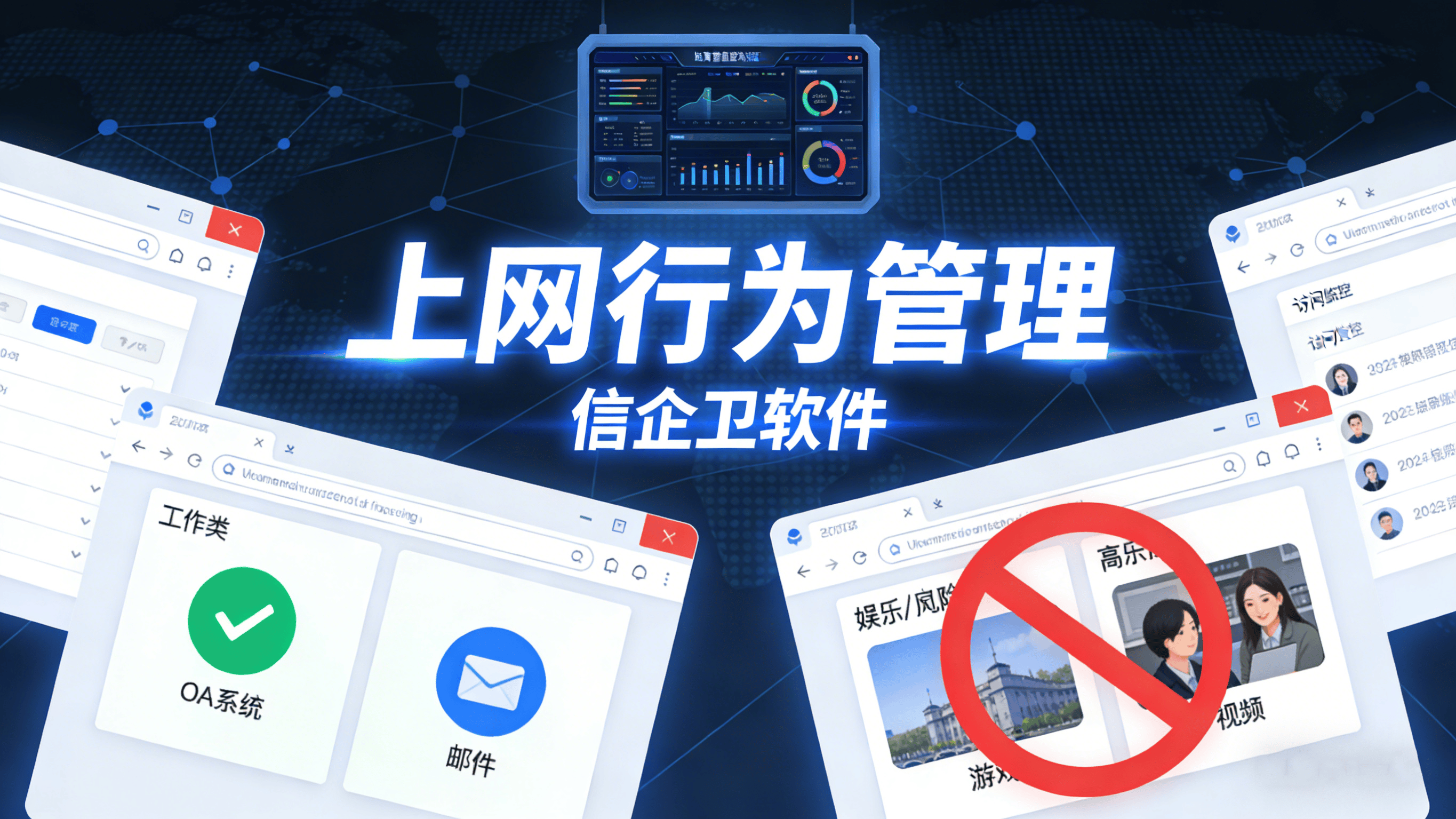 上网行为管理:智能过滤恶意网站、非工作类应用,按部门或时段分配网络带宽,确保关键业务流畅运行。