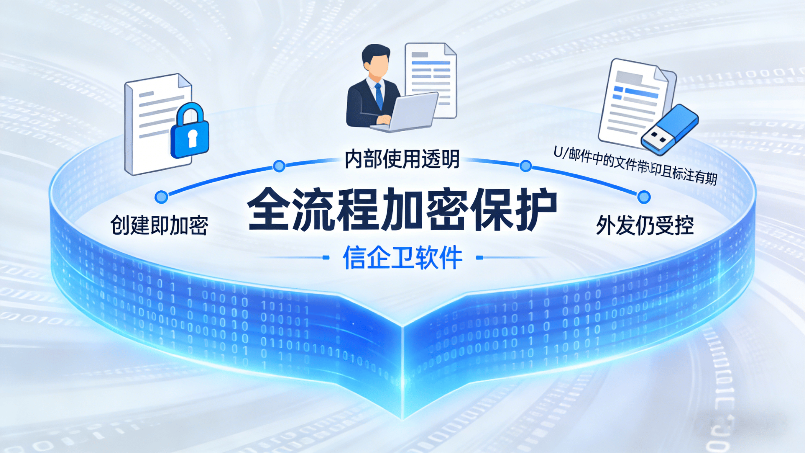 全流程加密保护:对敏感数据从创建、存储到传输全程加密,支持透明加密与强制加密模式,确保数据在内部流通或外发时始终处于加密状态。
