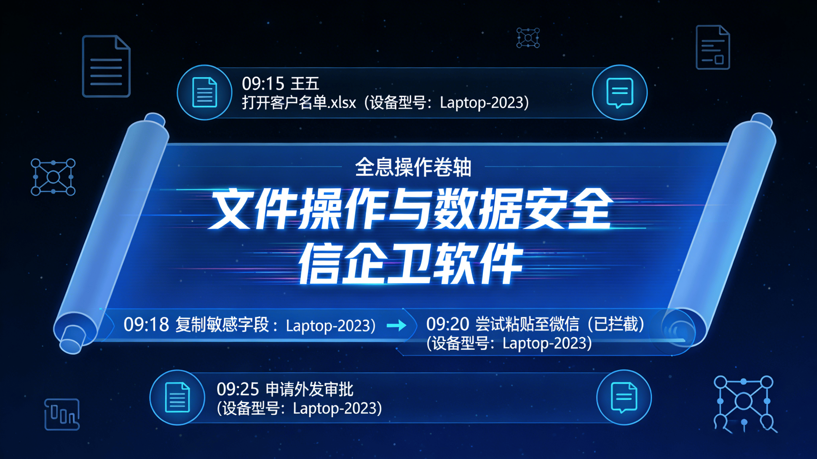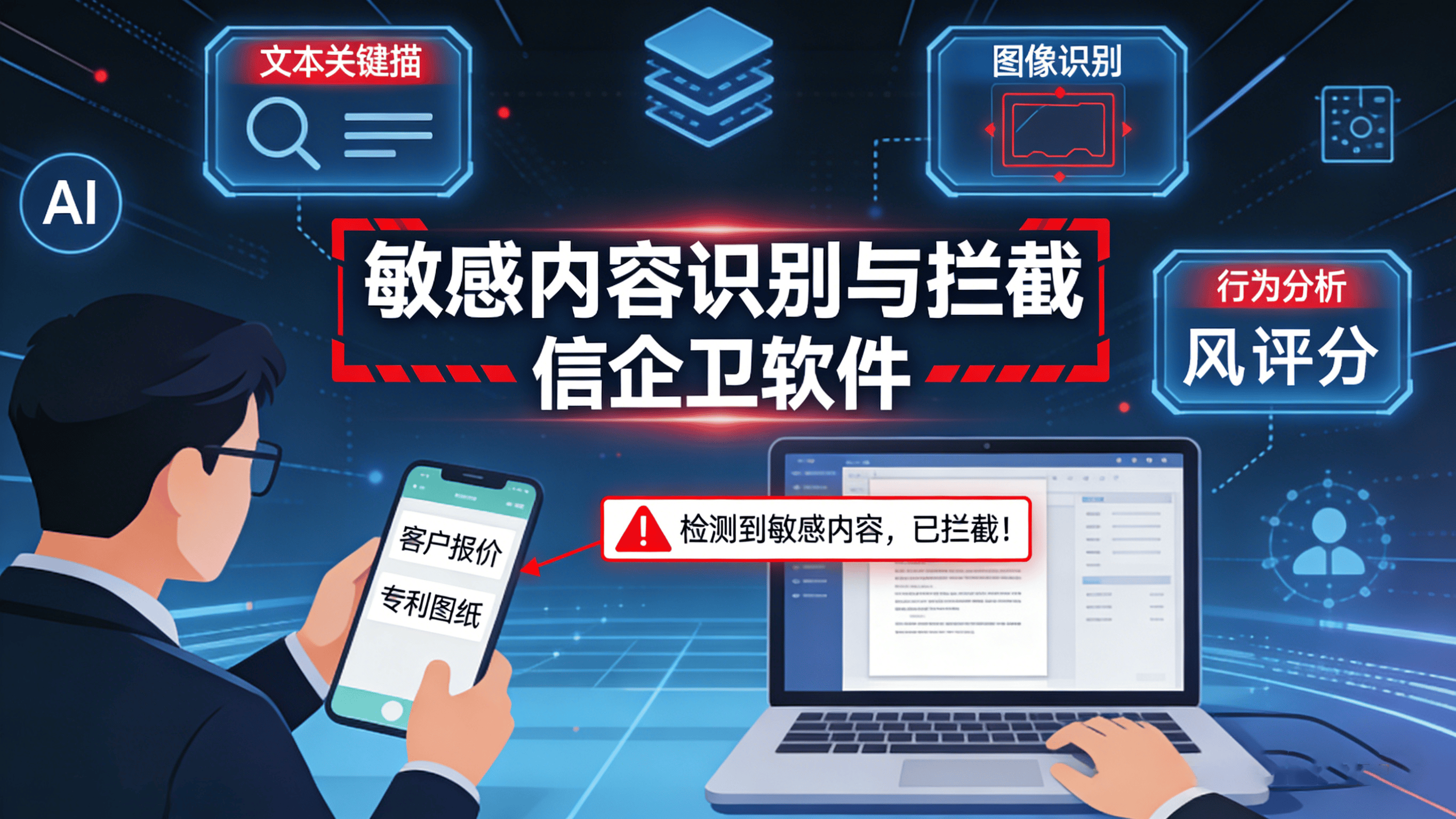 敏感内容识别与拦截:通过关键词库自动检测聊天内容、邮件及文件传输,外发敏感信息时立即触发告警并阻断。