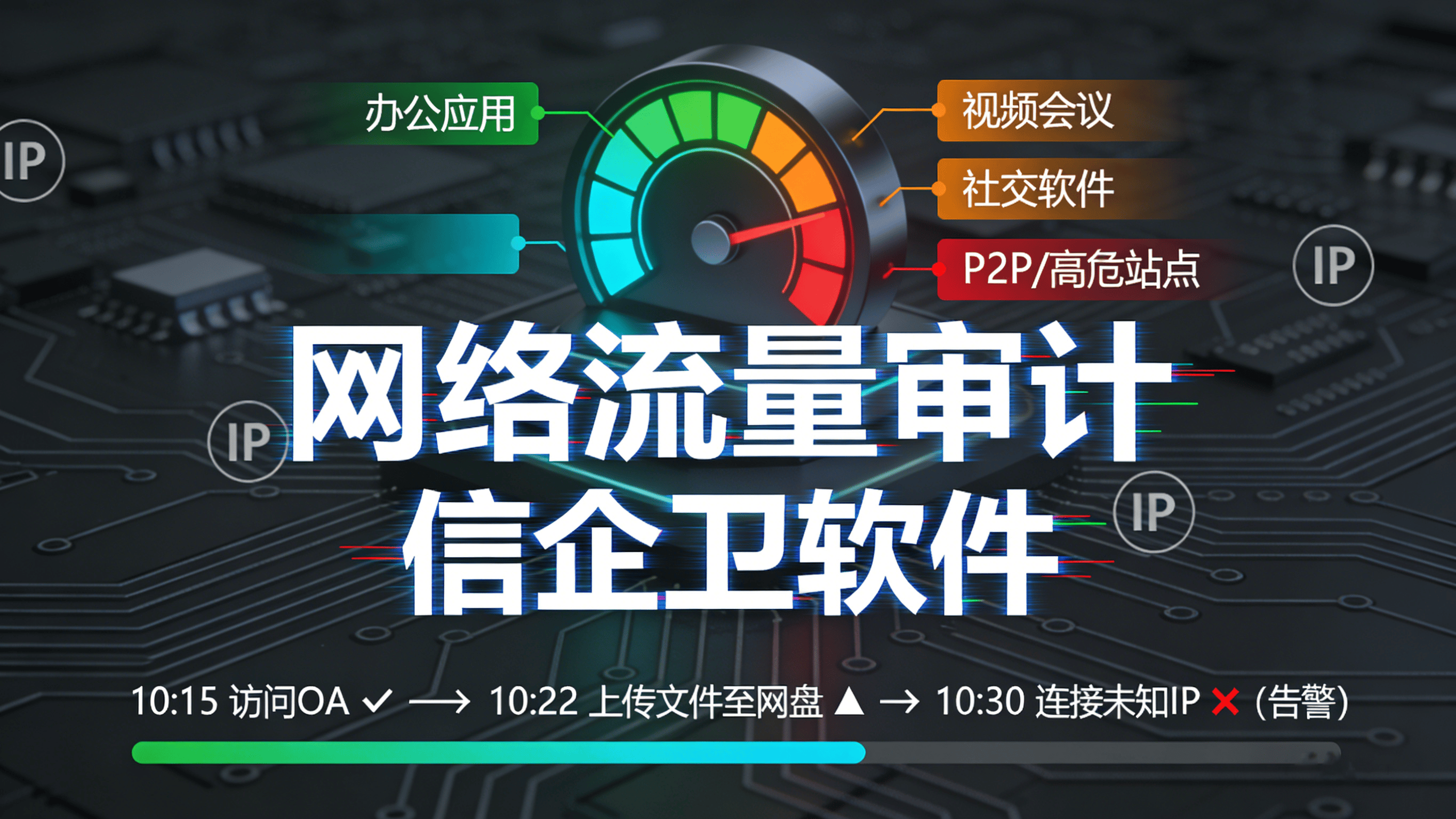 网络流量审计:智能分析内网流量分布,识别高风险应用,自动拦截非工作相关流量,保障带宽资源合理分配。