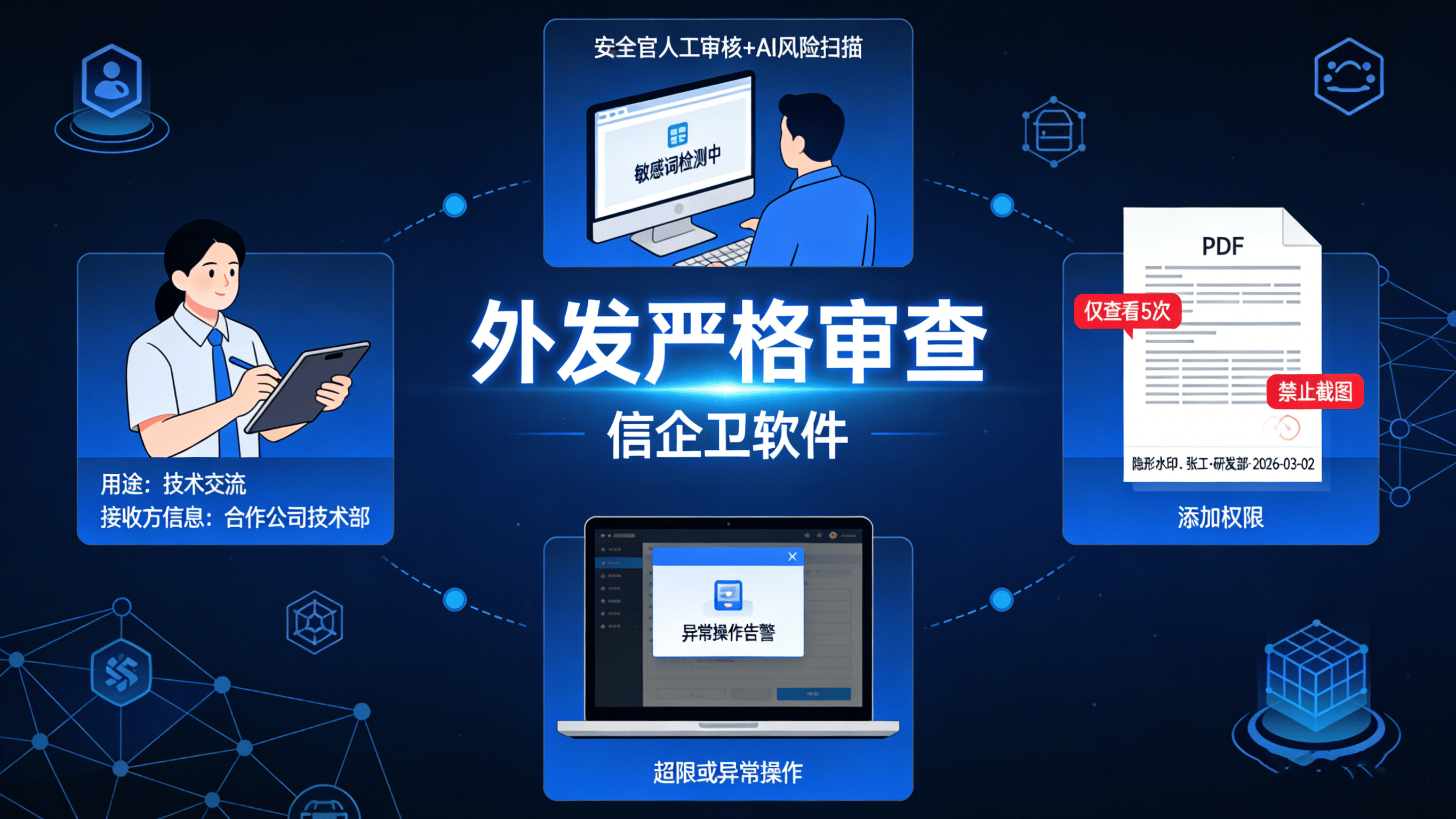 外发严格审查:对外发文件进行严格审查,添加动态水印、设置访问期限和次数限制,。