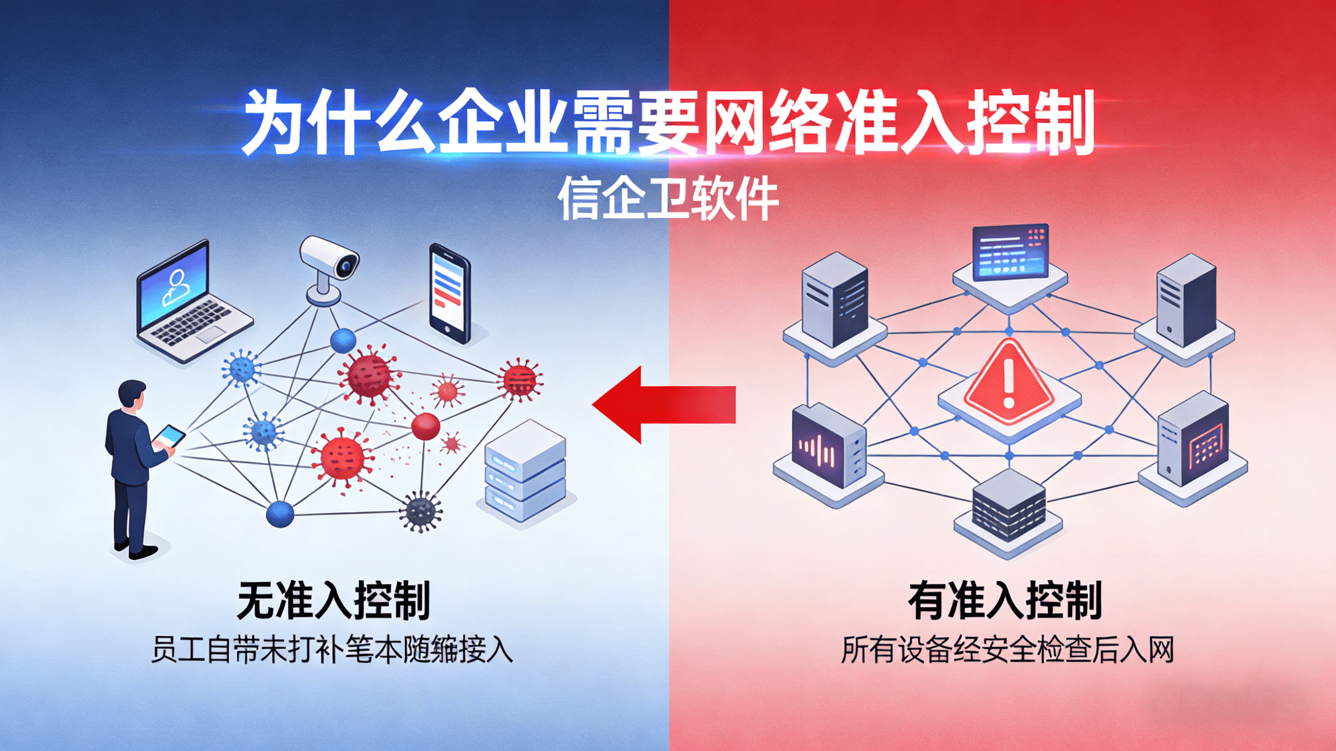 简单理解,准入控制系统就是一套“网络门禁”。任何设备想要连接企业网络,都需要经过系统验证与安全检测。