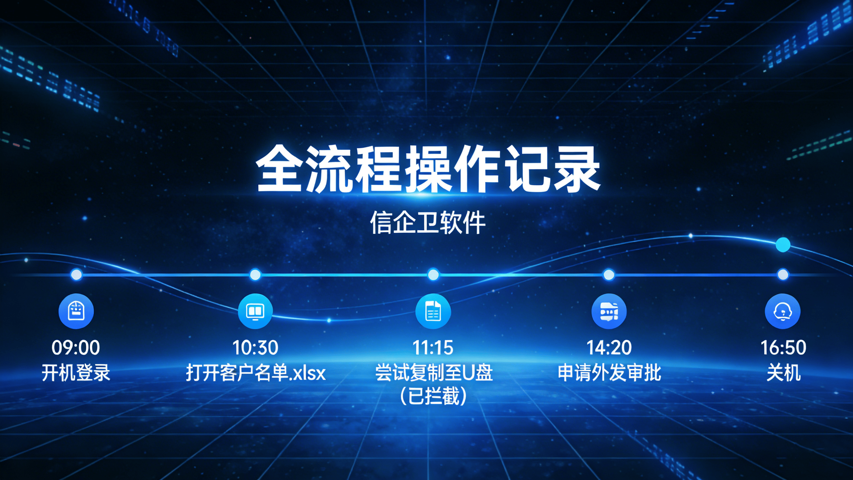 全流程操作记录:实时监控屏幕操作、文件访问、应用使用及网页浏览,自动生成可视化行为日志与时间画像,帮助管理者快速定位异常操作。