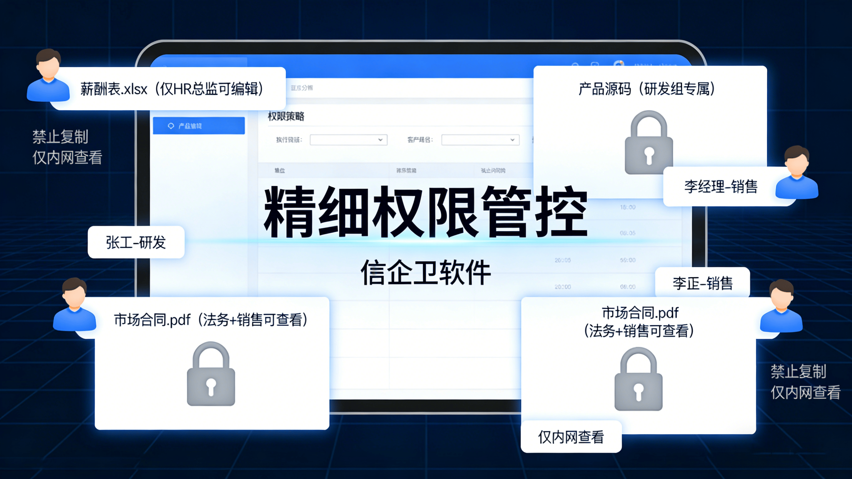 精细权限管控:支持按部门、岗位设置差异化策略,如禁用U盘、限制文件外发权限或屏蔽非业务网站,确保敏感信息仅在授权范围内流转。